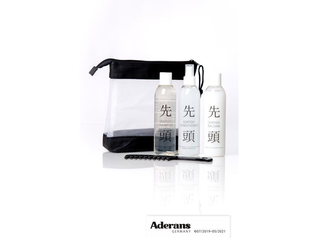 Sentoo sada kosmetiky na paruky 5-dílná- šampón, balzám, conditioner á 250 ml, hřeben, cestovní taštička